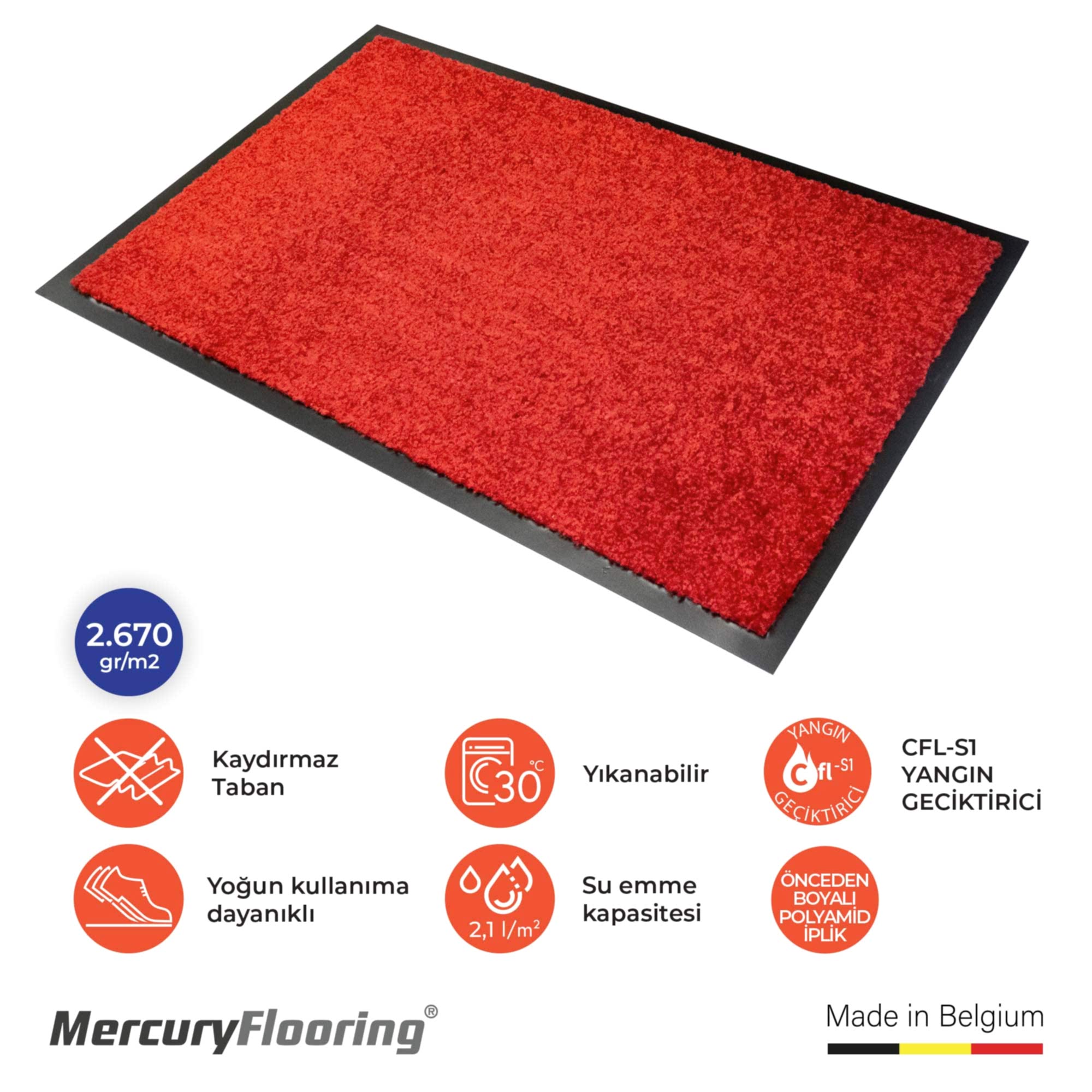 Wash & Clean Kırmızı Kapı Önü Nem Ve Toz Alıcı Paspas 120 x 180